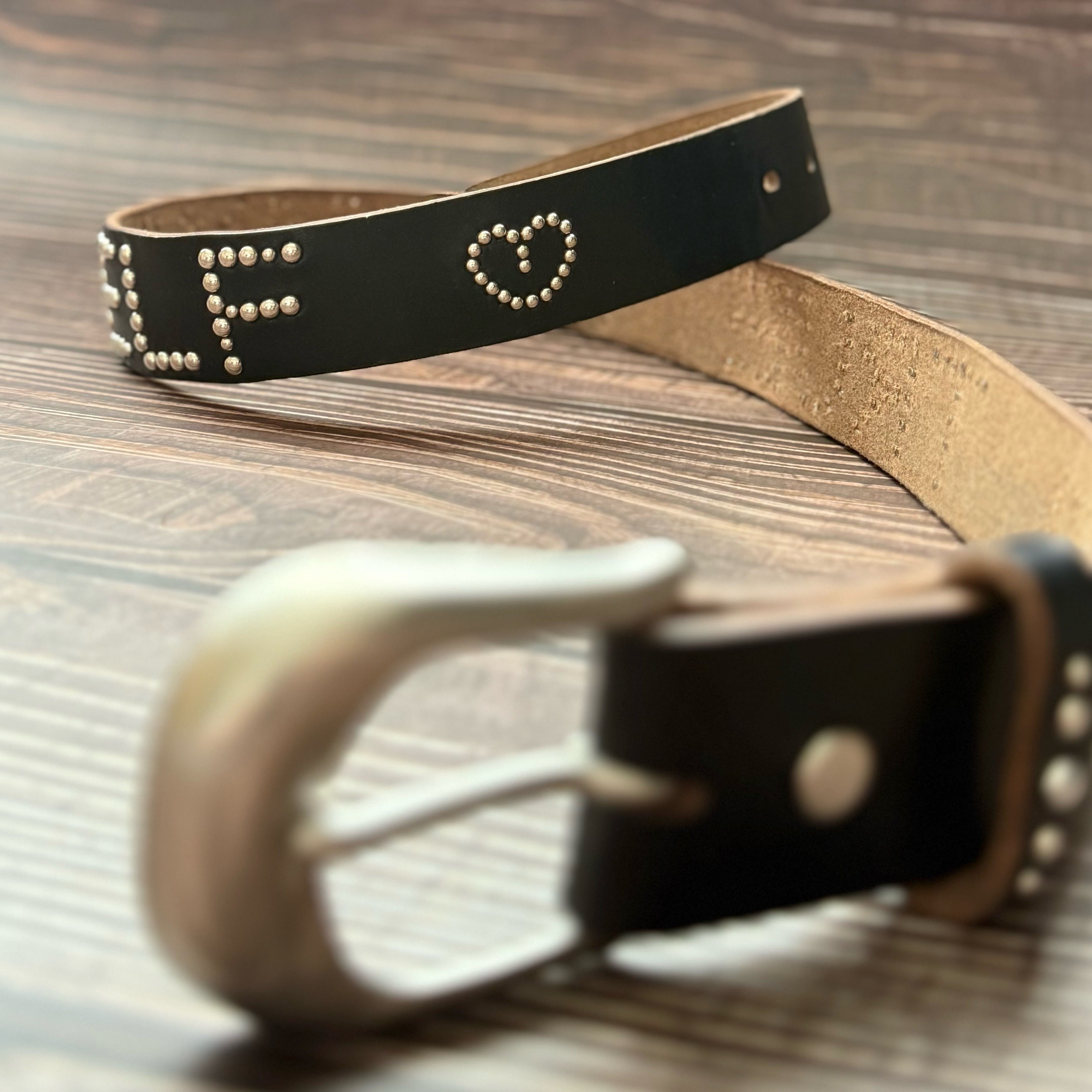 茶芯レザーベルト【ハート柄】