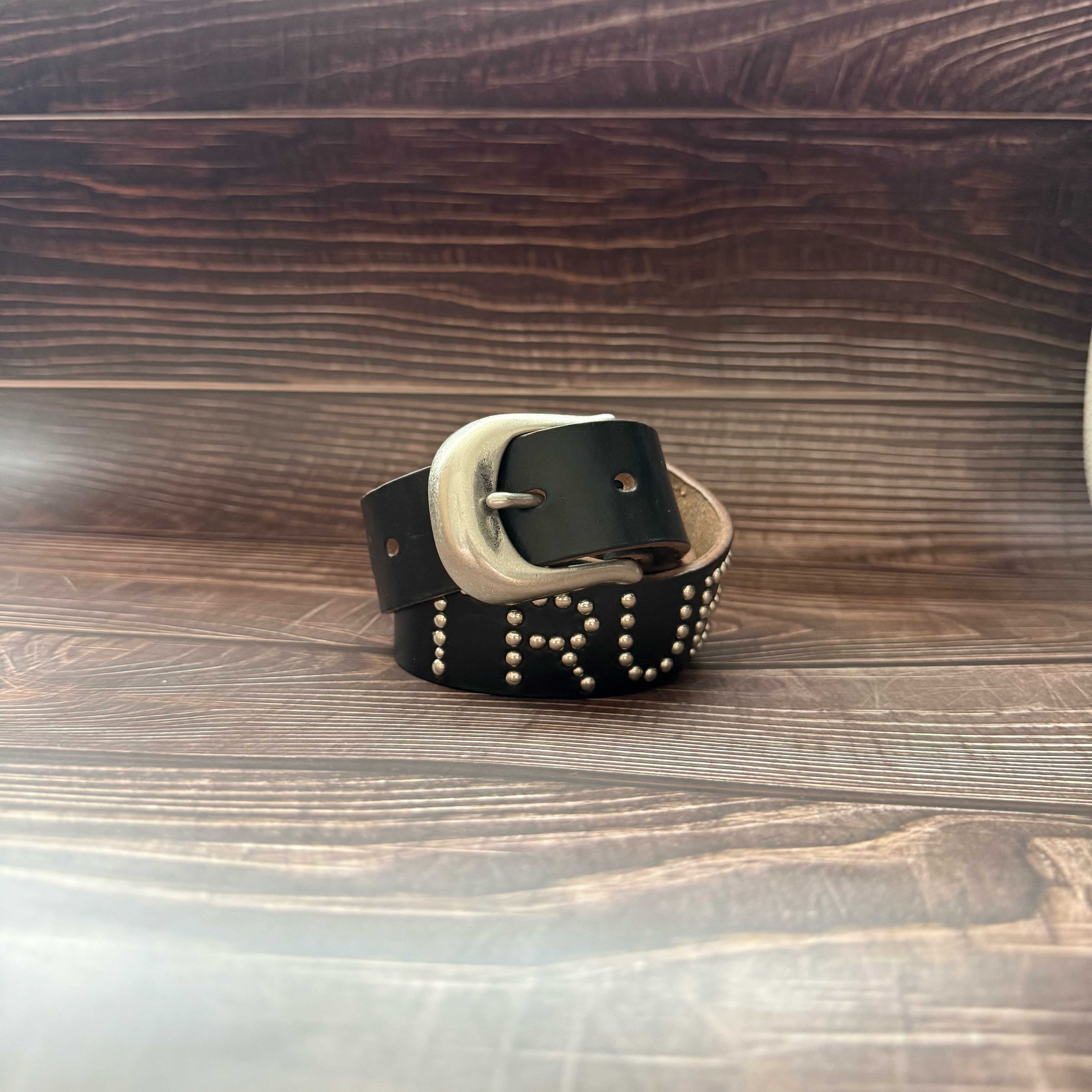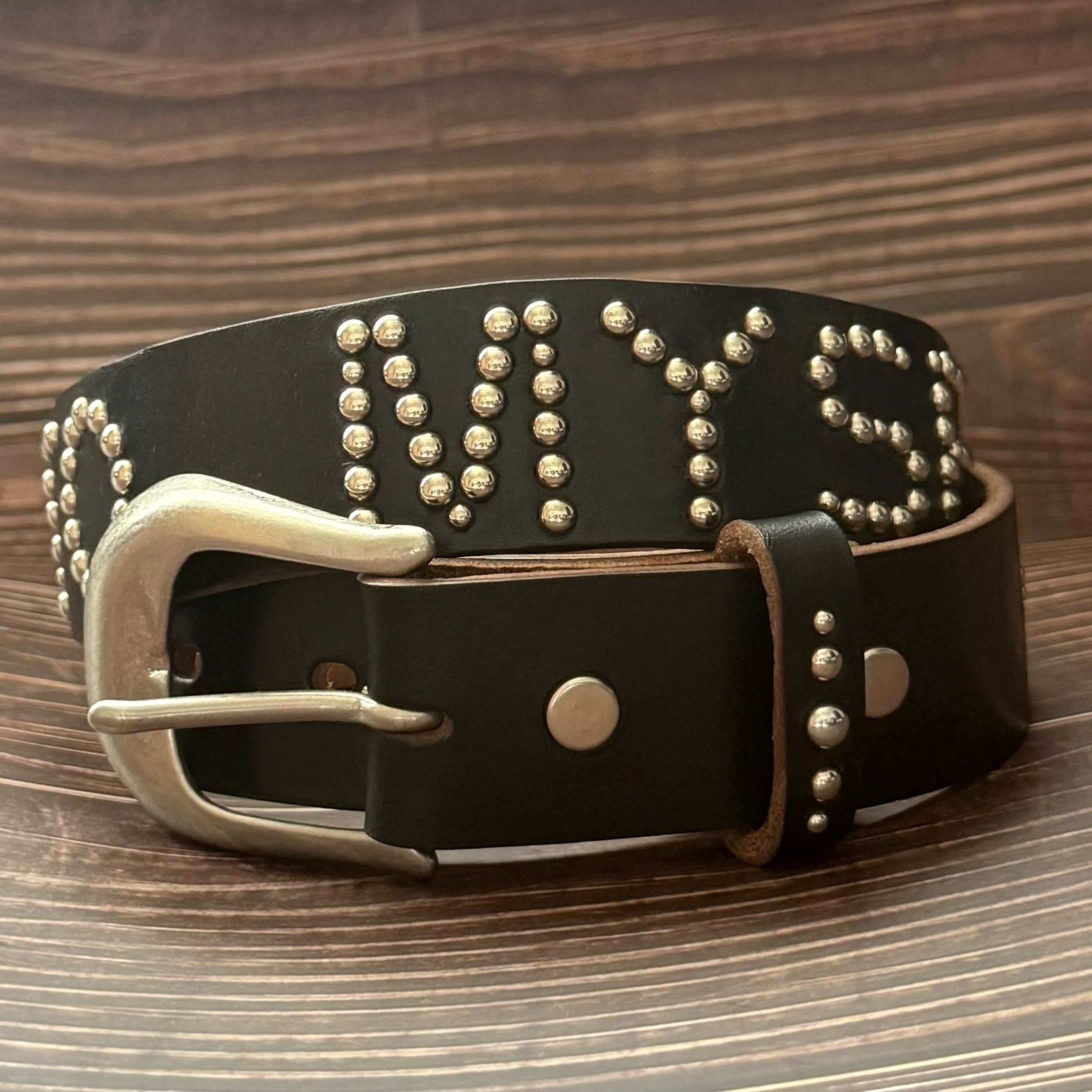 スタッズふんだんに打ち込んだインパクト抜群のベルト。